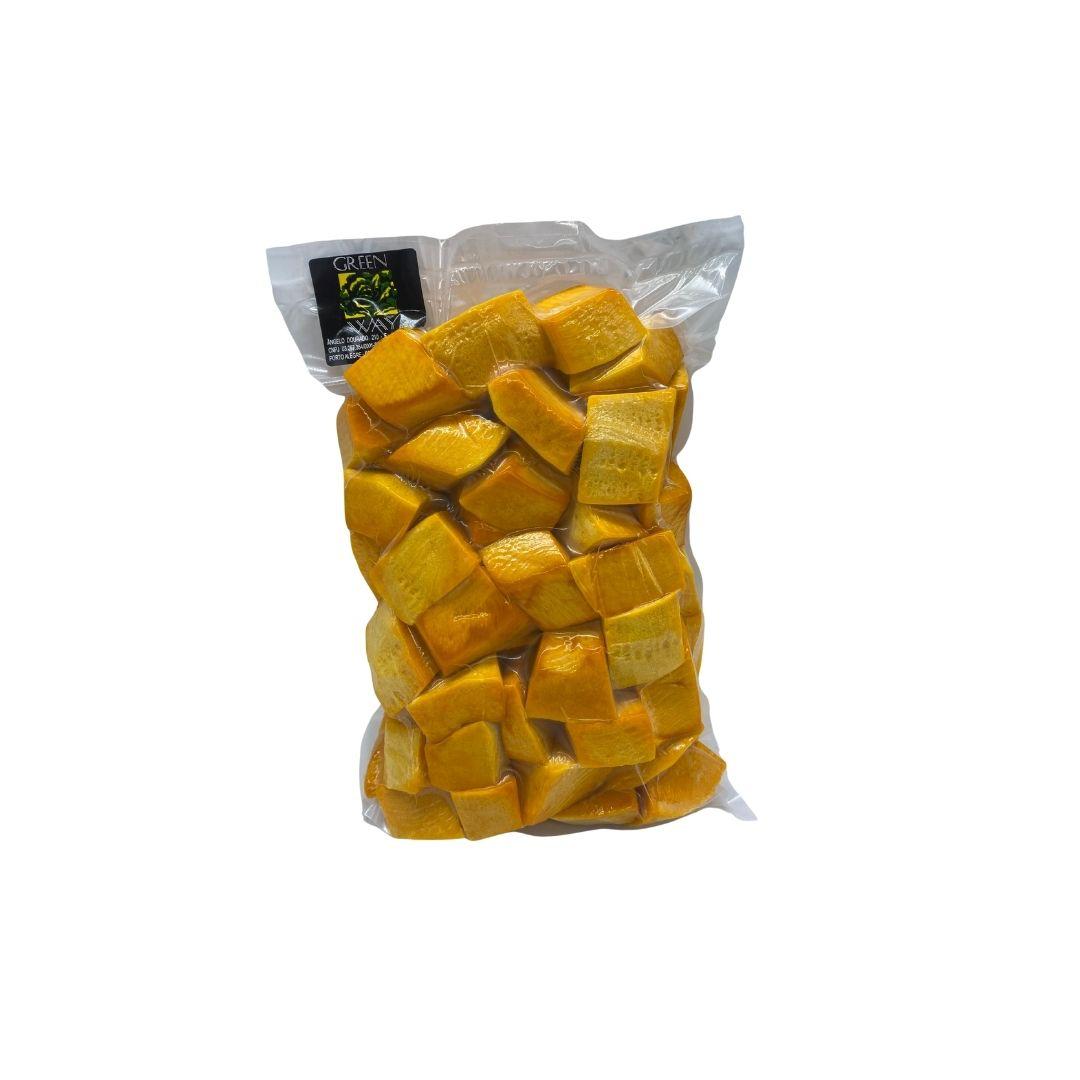 Moranga cabotiá descascada, higienizada e cortada em cubos.