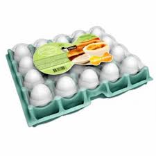 Ovos Brancos embandeijados com 20 un, etiquetado Tipo Grande.